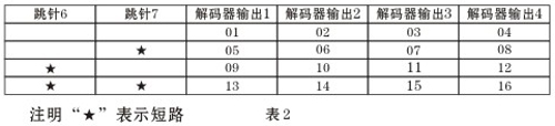注:該表是樓層號的設置,打“★”表示該跳針短路(短路即是插針帽兩針插上)一層1-16戶房間號編碼表如下表2所示: